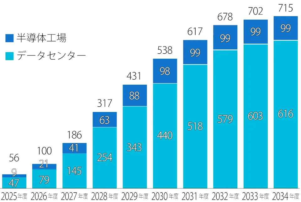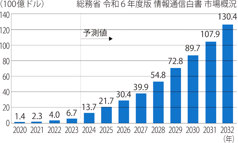 世界のAI生成用を中心としたデータセンターの市場は、今後2030年に向けて130兆円を超える見込み